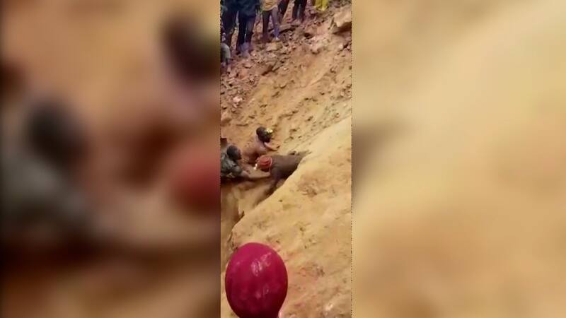 Un grupo de hombres apoyados con una pala y sus propias manos, excavaron la tierra logrando rescatar a sus compañeros tras el derrumbe de una mina de oro producto las fuertes lluvias en Kivu del Sur, en el Congo.
