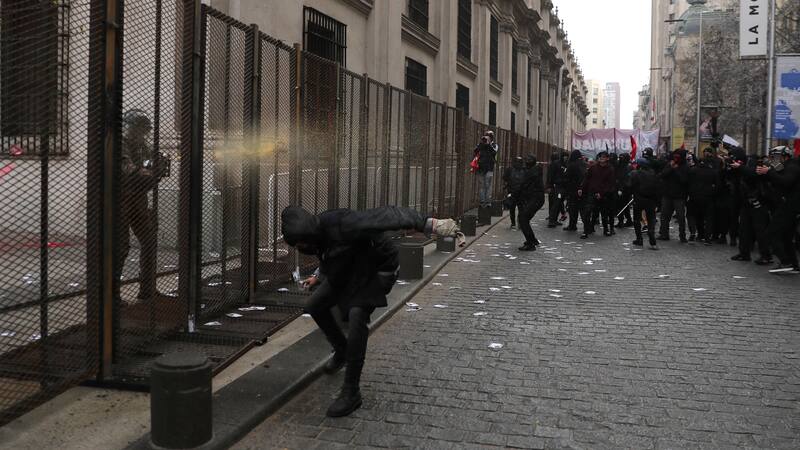 Un centenar de encapuchados arrojaron elementos contundentes y pintura en La Moneda, mientras que también se registraron desórdenes en Plaza Los Héroes, al inicio de la marcha por la Romería al Cementerio General.