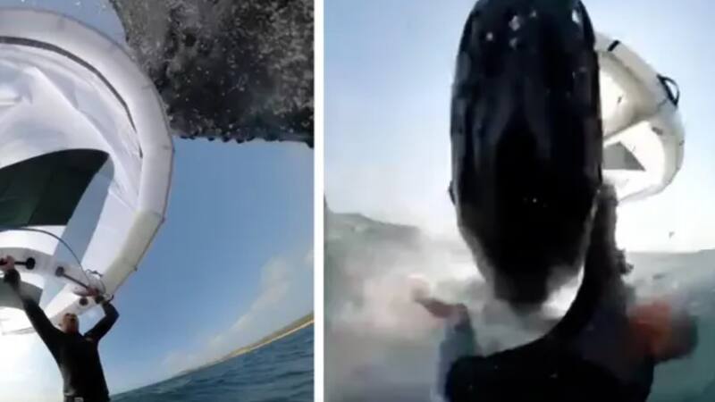 Skysurfista graba el momento justo en el que es impactado por una ballena