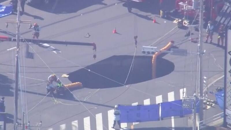 Socavón en Japón que “se tragó” un camión dejó a un hombre 4 días bajo tierra