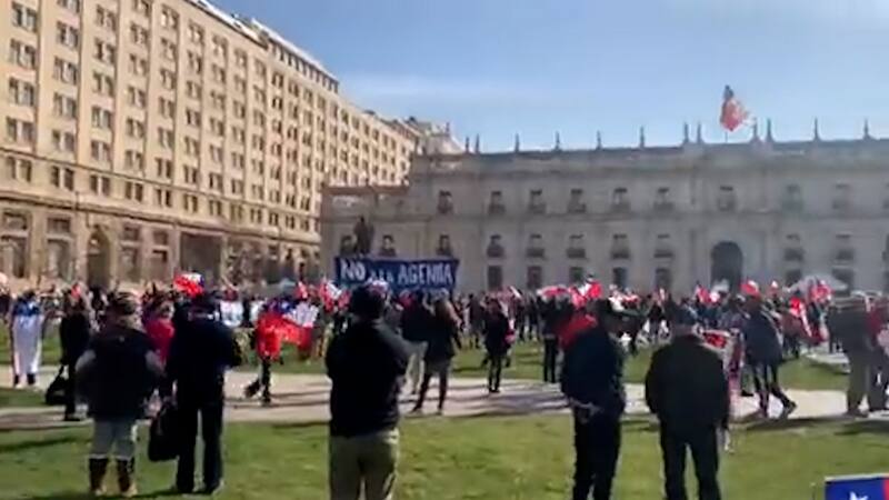 Team Patriota se reúne en el frontis de La Moneda para protestar contra el Presidente Gabriel Boric