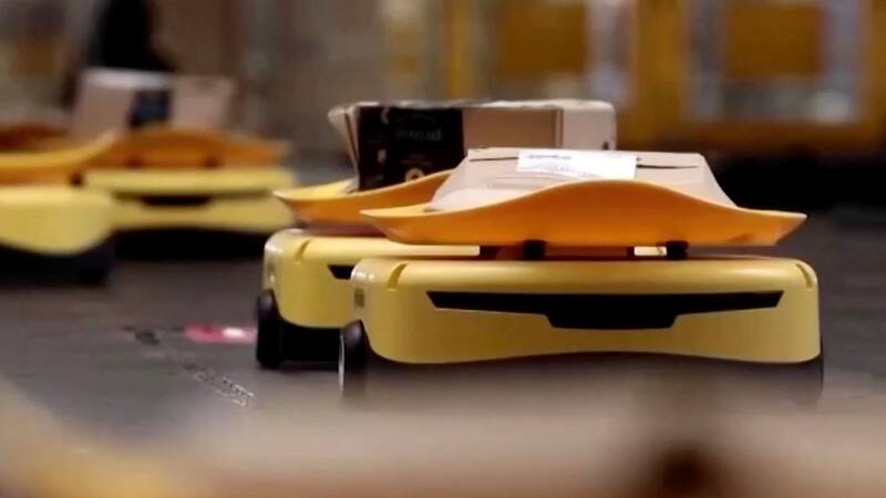 Una flota de cincuenta y cinco robots impulsados por inteligencia artificial, se deslizan alrededor del servicio postal Hellenic Post en Atenas, aumentando la clasificación de los correos en un 250%