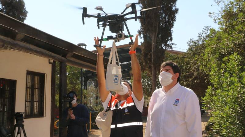 La municipalidad dispuso que sus dos drones despachen en la puerta de los hogares kits medicinales, para personas de la tercera edad o de zonas rurales de la comuna costera, muy similar a lo que realiza Amazon en Estados Unidos.