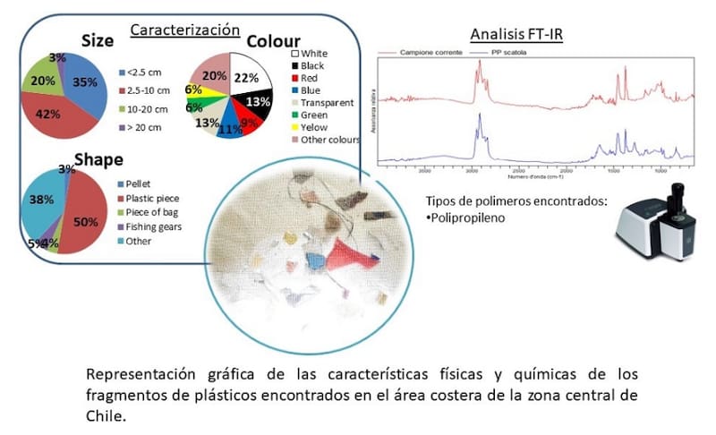En otros casos, los fragmentos terminan en pequeños trozos que, por las dimensiones que tienen, son considerados microplásticos, al ser inferiores a un milímetro de dimensión. Así, el segundo proyecto FONDECYT del que fue parte Pozo continuó la investigación asociada a la presencia de microplásticos como vector de sustancias químicas hacia la cadena trófica.