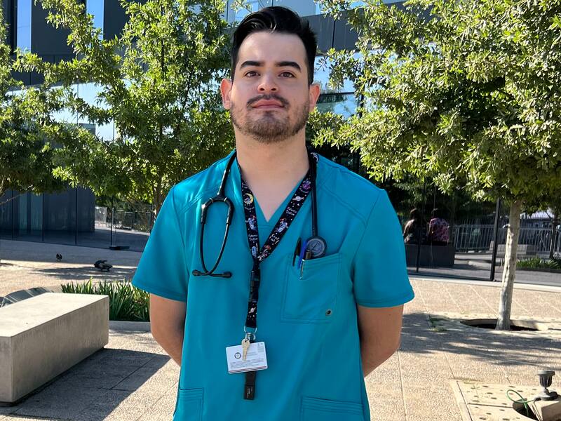 En Santiago, 92 de los estudiantes ingresaron al Hospital Clínico Félix Bulnes, donde rotarán por las áreas de Medicina Interna y Urgencia de adultos. Uno de ellos es Franco Cádiz, quien al contestar el llamado de Formando para Crear tomó una pequeña pausa en el recinto médico. A él le quedan tres meses para finalizar el internado y dice que “el día ha estado tranquilo”, a pesar de que ha pasado por distintas patologías, desde dolores abdominales hasta atender hemorragias.