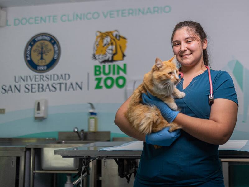“Saber que voy a cuidar animales y en un futuro vamos a salvarles la vida, me llena por completo”, dice la estudiante de Medicina Veterinaria Isidora Urrutia en las instalaciones del Hospital Docente Clínico Veterinario del zoológico más grande y moderno del país, lugar donde comenzó a realizar su pasantía clínica, gracias a la alianza entre Buin Zoo y la U. San Sebastián.
