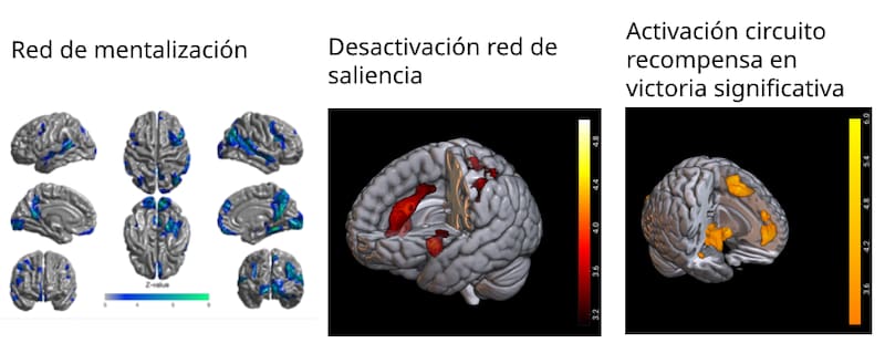 La contracara es la “derrota significativa”, que es el nombre que se le da al dolor social que genera ver que tu archirrival vence a tu equipo. En ese instante se activa la “red de mentalización”, un sistema propuesto por esta investigación que sugiere una adaptación evolutiva, algo “nuevo” en el desarrollo del ser humano, que permite racionalizar el dolor y no explotar, sino que refugiarse en el interior de las vivencias personales.