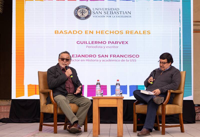 Ese mismo día tuvo lugar “Basado en hechos reales”, conversación entre el escritor Guillermo Parvex, quien acaba de publicar su último libro titulado “Soldado por circunstancia”, y el historiador y académico USS, Alejandro San Francisco. Su diálogo versó sobre cómo la investigación y el conocimiento de la historia son una parte esencial del proceso creativo y escritural.