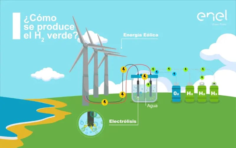 En síntesis, el hidrógeno verde es un elemento energético secundario que se obtiene mediante otro secundario -la electricidad- a base de radiación solar, vientos y también de geotermia. La máquina que separa las moléculas del agua se llama electrolizador.