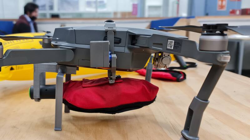 El trabajo ha sido arduo. Actualmente, la USS logró dar con un prototipo funcional de dispositivo, construido en el Laboratorio por sus estudiantes, apoyados por sus profesores: lograron acoplar a un dron profesional de consumo civil capaz de lanzar una boya autoinflable, donada por la empresa alemana RESTUBE, de modo que lo convierte en: un dron de rescate.