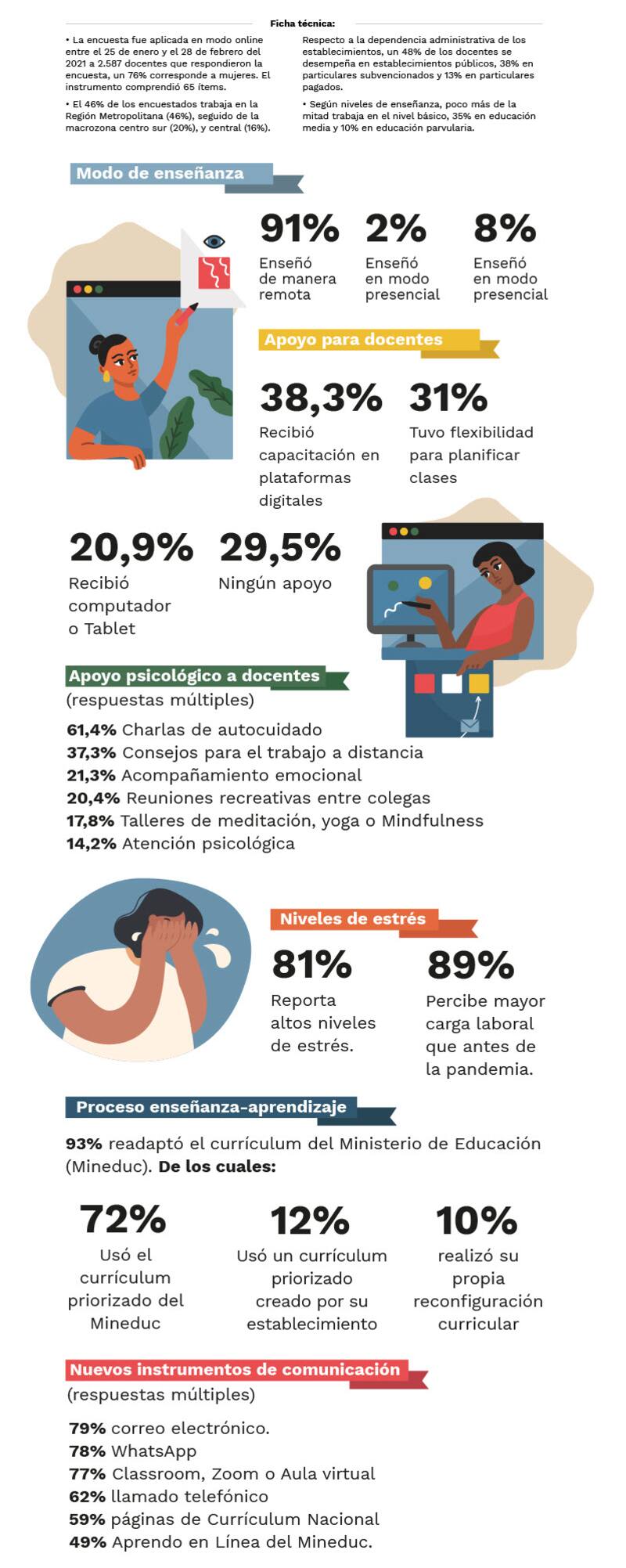 La medición abarcó a 2.587 profesoras y profesores de todo el país a fines de enero y febrero pasados, tras finalizar el año académico 2020.