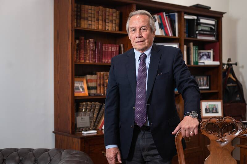 En su oficina de Casona Las Condes, monumento nacional que data de 1560, el rector de la UNAB Julio Castro tiene a sus espaldas un retrato de Andrés Bello. Aunque no es amigo de los flashes, el rector está contento.