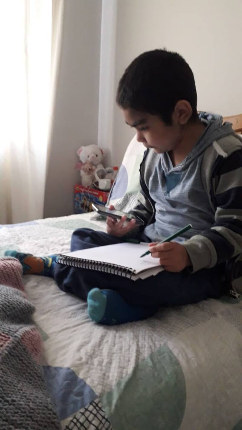 Sebastián fue a la escuela por última vez el 13 de marzo. Desde entonces, ha tenido que conectarse a clases desde su casa en Puente Alto. En un principio se conectaba por el celular de su mamá, pero a veces los datos no les alcanzaban. Sebastián tiene un tablet, pero necesitaba que su mamá le compartiera internet para funcionar, con los mismos escasos datos que ella tenía en su celular.
