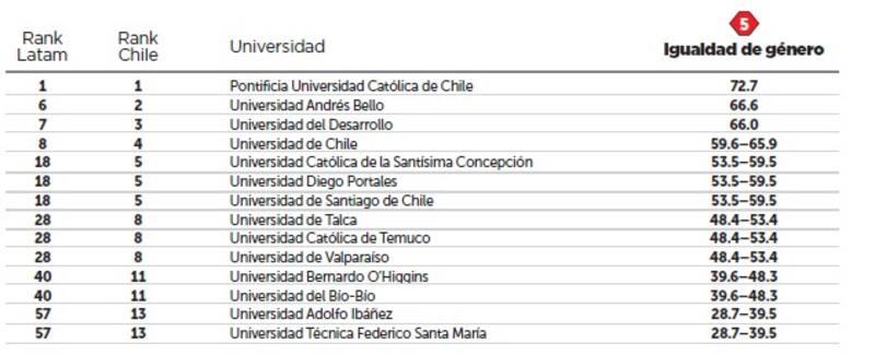 Es por ello que algunas de las medidas analizadas fueron las investigaciones sobre género, las políticas sobre igualdad, el compromiso con la contratación y promoción de las mujeres, así como la proporción de estudiantes mujeres de primera generación.