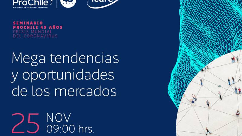 Esas y muchas otras preguntas más formarán parte del próximo seminario organizado por ProChile e Icare, llamado “Mega tendencias y oportunidades de los mercados”, una cita digital que se realizará este miércoles 25 de noviembre y que contará con visiones y análisis de actores tanto nacionales como internacionales.