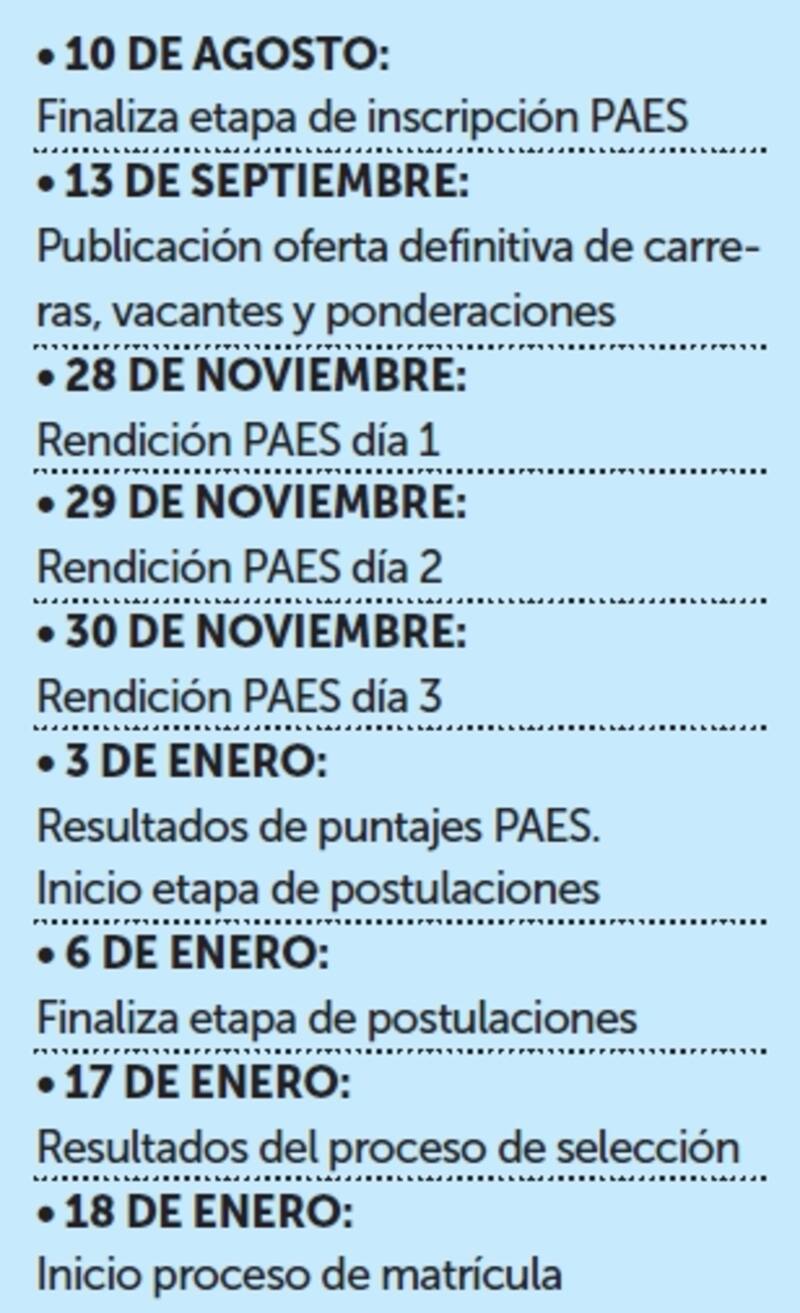 Miles de estudiantes se encuentran preparando esta evaluación que reemplazará a la Prueba de Transición o PDT. La nueva PAES trae novedades, pero también la responsabilidad de cumplir con el calendario del proceso de admisión.