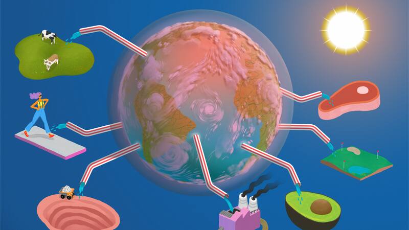Desde la Facultad de Ciencias de la Vida de UNAB, Edmundo Muñoz entrega datos de cómo la vida cotidiana influye en el calentamiento global, como que entre el 70% y 90% de nuestra huella de carbono está asociado a la mecánica de una casa: “Los alimentos representan un poco más del 30%, más la energía de la casa, el auto, el transporte público o el gas para cocinar tenemos otro 40% o 50%”, dice.