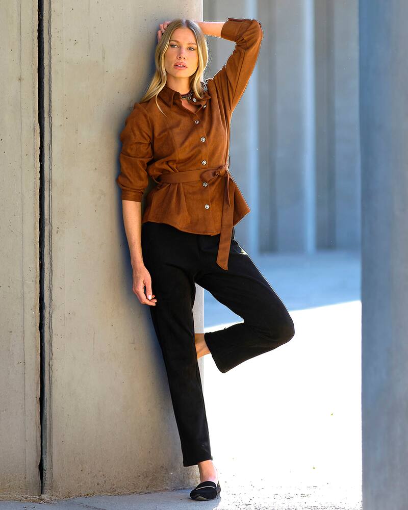Incorporar esta tendencia en tu clóset no tiene por qué ser costoso. Con prendas clave como una chaqueta de gamuza o un pantalón en este material, es posible elevar cualquier look y sumarse al estilo cowboy de manera accesible.