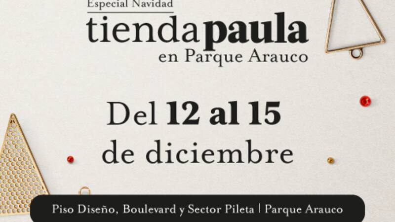 Del 12 al 15 de diciembre, Tienda Paula Especial Navidad se realizará en el Piso Diseño, Sector Pileta y Boulevard de Parque Arauco.