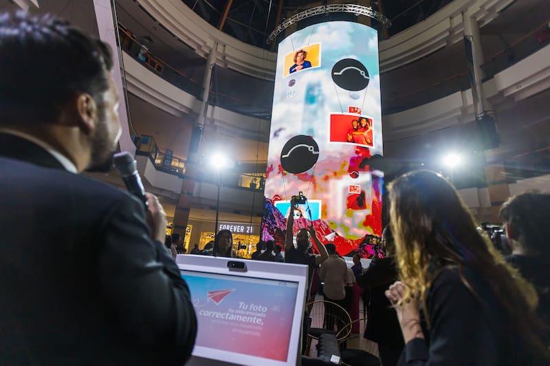 En los próximos días, no será raro ver una multitud de niños, niñas y adultos en las plazas centrales de malls como Costanera Center, Florida Center o Alto Las Condes. Será por algo lúdico: la posibilidad de tomarse una foto que, acto seguido, podrá proyectarse en una enorme pantalla -sobre los 16 metros de alto- que no solo muestra las fotos de los visitantes, sino también verdaderas obras de arte digitales.