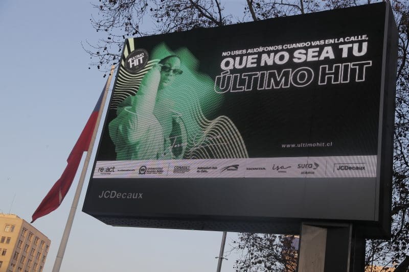 Los guiños a la música en la gráfica están en la palabra ‘hit’, que también aluden al golpe (en inglés). Usar el fenómeno musical urbano para decir “No uses audífonos cuando vas en la calle, que no sea tu último hit” fue el acierto que valoraron tanto Re:Act como Conaset y las empresas de su Pacto Nacional por la Seguridad Vial (Buses Vule, seguros Sura, Honda Chile e Isa Intervial).