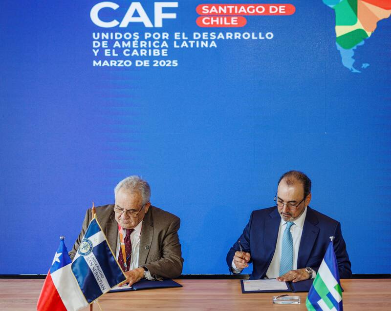 La ceremonia de la firma de acuerdo estuvo encabezada por Sergio Díaz-Granados, presidente ejecutivo de CAF, y Hugo Lavados, rector de la USS. En la actividad, realizada en las dependencias de la Comisión Económica para América Latina y el Caribe (Cepal), también participaron Gonzalo Arenas, decano de la Facultad de Derecho y Ciencias Sociales; Luis Toledo, director de Cescro; y Rodrigo Ubilla, director de Centro de Educación Ciudadana (Cecuss).