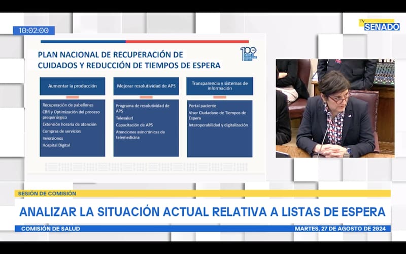 Para hacer frente al retraso de las listas de espera del sector público en general, no exclusivamente oncológicas, la ministra Ximena Aguilera señaló que su cartera tiene un “Plan Nacional de Recuperación de Cuidados y Reducción de Tiempos de Espera” que se basa en tres pilares, con acciones que están en proceso o se implementarán.