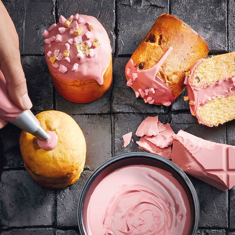 De color naturalmente rosa y sabor frutoso con toques cítricos es este chocolate Ruby de la compañía suiza Barry Callebaut. Esta variedad es ideal para innovar en las creaciones caseras durante el confinamiento. Es extraído de habas de cacao que se encuentran en Brasil, Ecuador y Costa de Marfil y tiene 47,3% de cacao. @callebautchile