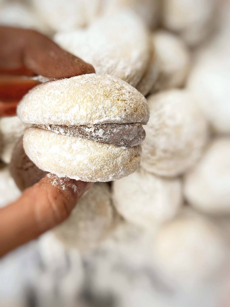 Una literal nube en la boca. Así son los empolvados de Valeria Miranda, un emprendimiento que partió con la pandemia, se concentró en lograr una receta para ella perfecta y ¡sí, lo logró! Casi con esponjosidad de sustancia, rico manjar, algo amarilla la masa por los huevos de campo frescos que usa y un tamaño perfecto (más chico de lo usual) para comerse varios. Los vende en cajas de 12 por $7.000. @vm_antojo