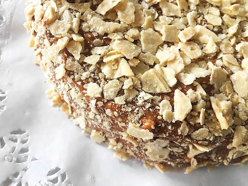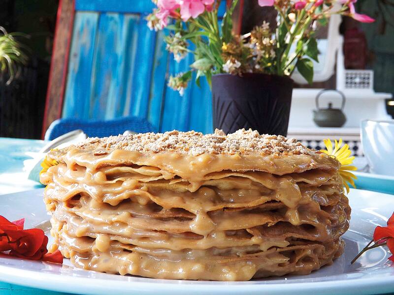 Maca y Raimundo son pareja. Él, arquitecto; ella, diseñadora, se pusieron a hacer la receta de hojarasca manjar que Raimundo había heredado de su familia. Lo rico es que la hojarasca se siente presente, firme pero no dura. Ya después el manjar, blanco y de campo o tradicional. Además se puede agregar nuez, mermelada de frambuesa, damasco o con fruta natural. Es muy personalizado y a pedido del cliente. Para 10, 15 o 20 personas desde los $15.000 (después varía según pedido). Es mascar una dulce historia nacional.