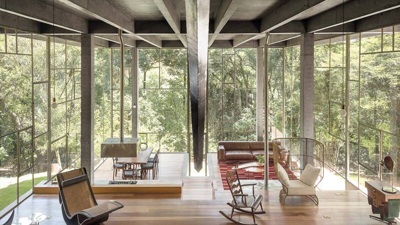 Esta casa diseñada por Atelier Branco para un filósofo brasileño de 78 años se despliega entre las copas de los árboles del bosque atlántico de Brasil, en Vinhedo. Como hecha por los dioses, la vivienda casi no pide permiso al entorno, y existe bajo una nostalgia modernista, con toda la influencia arquitectónica de la posguerra brasileña.