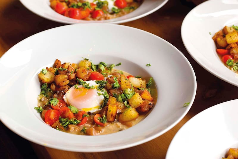 Aparte saltear las papas cocidas con cáscara y en cubos hasta dorarlas por todos lados. Servir junto a la mezcla de cochayuyo, algunos tomates cherry por la mitad y el cilantro fresco picado. Opcionalmente poner encima un huevo frito o pochado en cada plato.