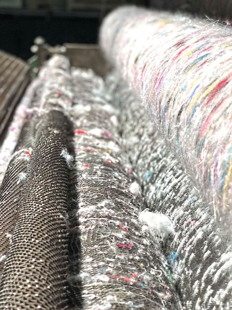 Cumplir el compromiso de que la ropa en desuso no fuera a parar a un vertedero fue el motor que las impulsó a ir más allá, y pensar qué hacer con todo lo que ya no podía ser vendido, donado o convertido en accesorios y juguetes. “En un momento teníamos 400 kg de ropa en mal estado y no sabíamos qué hacer con ella. Habíamos tratado de reciclarla de varias formas -haciendo relleno, trapillo- pero nada daba buenos resultados. Pero, la vida tiene muchas vueltas y muchas cosas lindas pasan, que pueden ser casualidades. Hay que estar despierto, buscando las oportunidades que se presentan...”, dice Rosario, para contar la anécdota de que en un asado alguien le comentó que su padre tenía problemas con una fábrica, una antigua hilandería. Rosario ignoraba que aún existiera este proceso industrial en Chile, estaba sorprendida y quería conocerla. ¿Sería posible hacer hilado con esos 400 kg que la estaban atormentando? Lo hicieron.