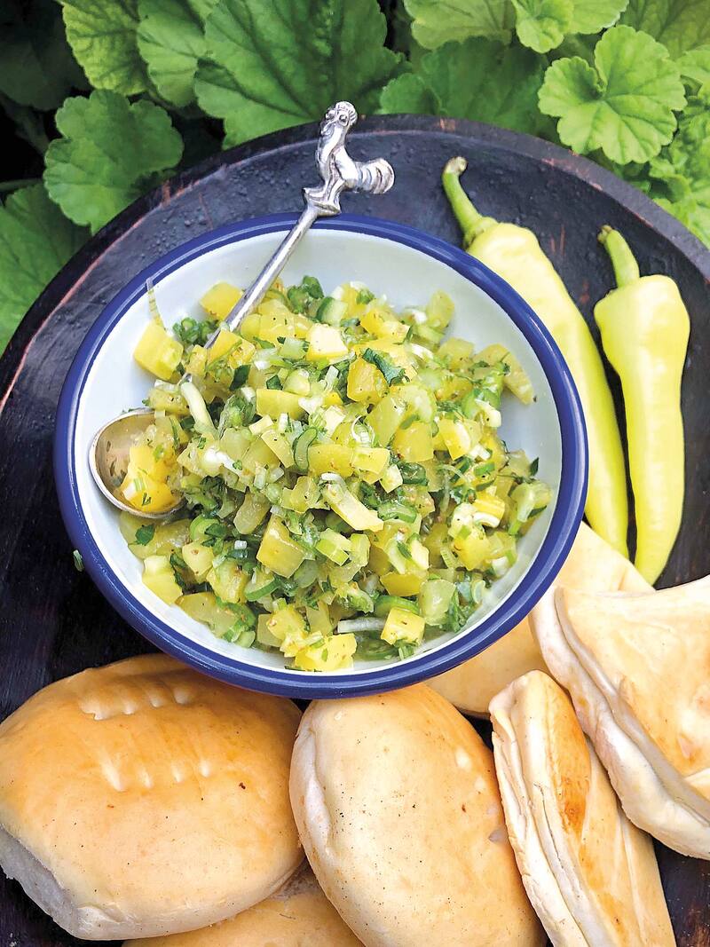 Una fruta tan chilena y hermosa llenará de carácter y sorpresa este pebre fragante. Gran compañero de una malaya de cerdo, quesos blancos fundidos en paila de fierro o un salmón al fuego.