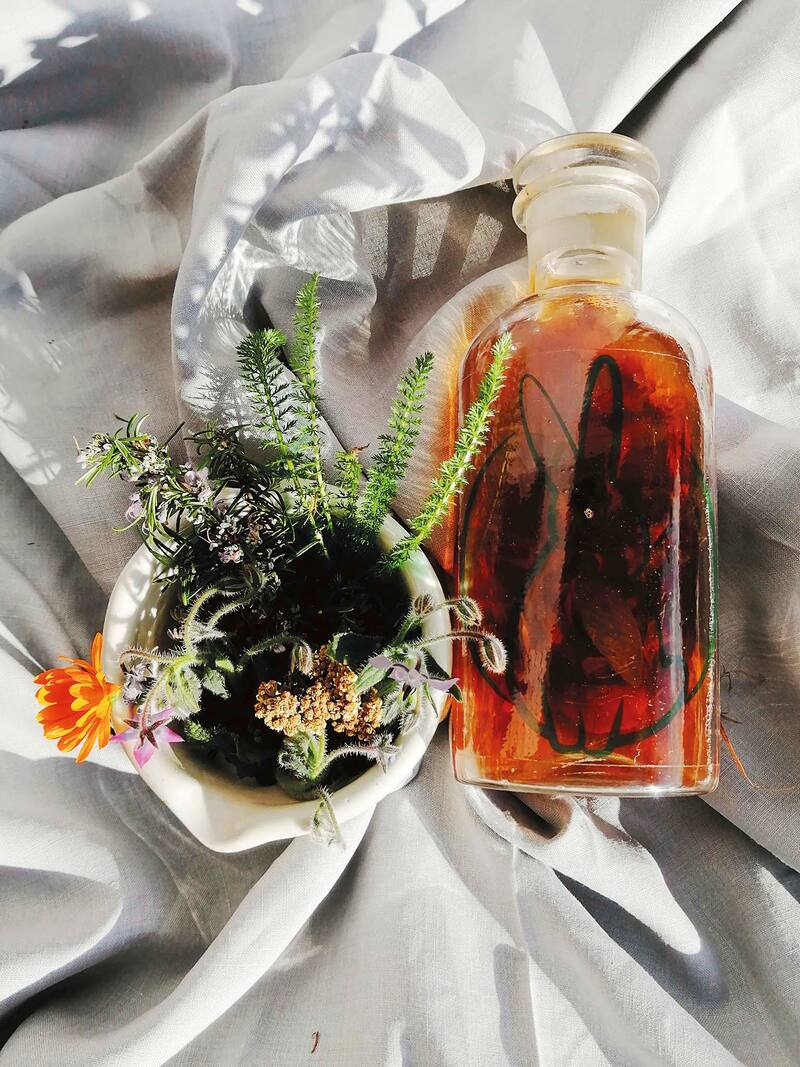 El proceso de macerado en alcohol es en frío y “es el tiempo el que hace el trabajo de extracción, ya que para lograr extraer el material de forma adecuada la maceración puede durar desde uno hasta varios meses”, suma Constanza, quien explica que la maceración de hierbas en alcohol es más completa y variada que una maceración en otro medio en cuanto a los compuestos que se logran extraer: “Aquí estamos hablando de nutrientes como vitaminas y minerales, ácidos, alcaloides, flavonoides, polisacáridos, resinas, taninos, aceites volátiles y otros compuestos”, explica.