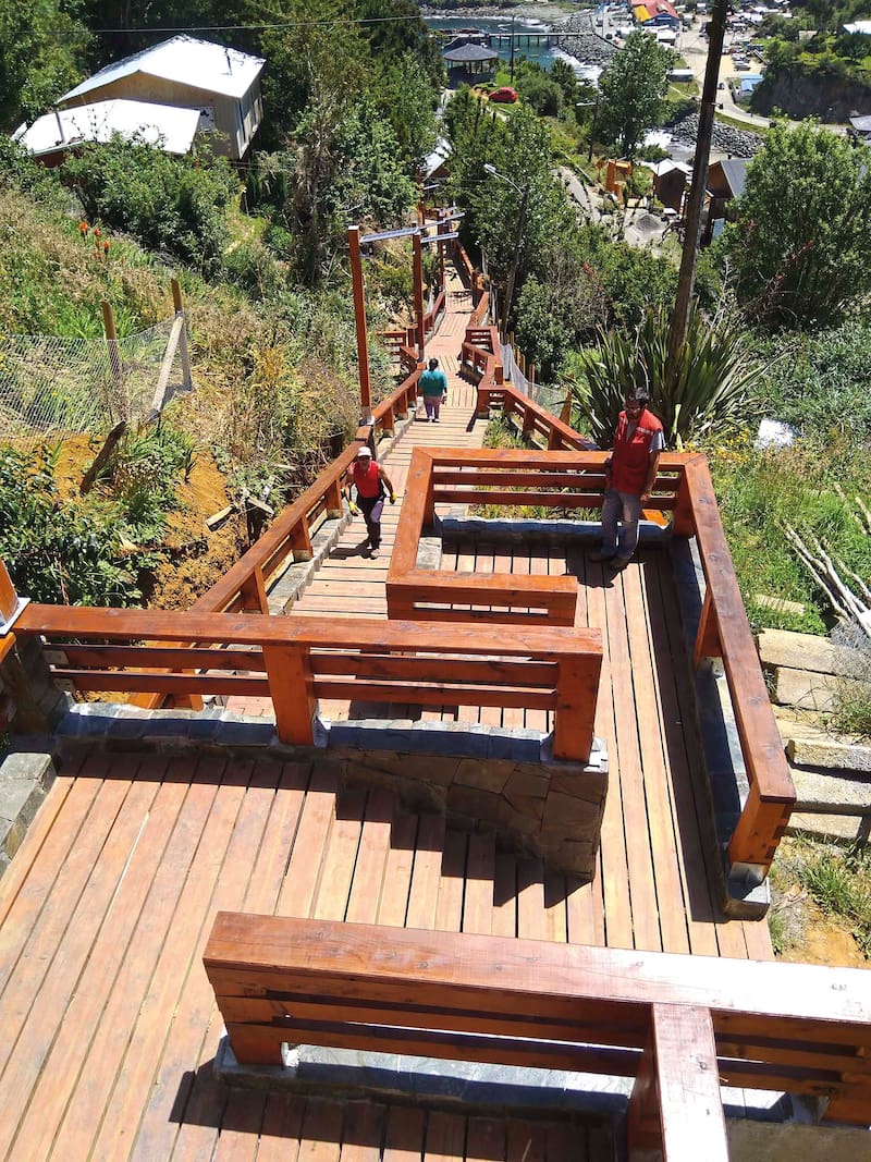 Después del impacto que tiene el proyecto para la gente que hará uso de él, Cristián destacaría que el trabajo, tanto de diseño como de construcción, lo hizo codo a codo junto a su socio, el arquitecto Christopher Sáez, y el hecho de que ambos son arquitectos formados y asentados en regiones. “San Juan de la Costa es una de las localidades más pobres de Chile. En esta escalera nos propusimos un desafío técnico que no es menor. La materialidad tiene que ver con elementos locales, como piedra laja y madera; pero también hay técnica del lugar, los carpinteros son de allá. Creamos esta estructura en un lugar donde no puedes instalar muchas máquinas, con un presupuesto acotado. Todo se pensó y desarrolló desde acá. Eso nos enorgullece: que la CChC y las instituciones de mayor peso en el mundo de la arquitectura y la construcción estén mirando hacia los profesionales que hemos decidido quedarnos en las regiones y desarrollarnos desde aquí”.