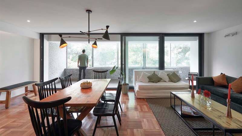 Un espacio abierto y multipropósito, para cocinar, compartir y funcionar como ‘home studio’, fue la apuesta de los dueños de este departamento, frente al Parque Forestal, remodelado por la oficina de arquitectura 57 Studio.
