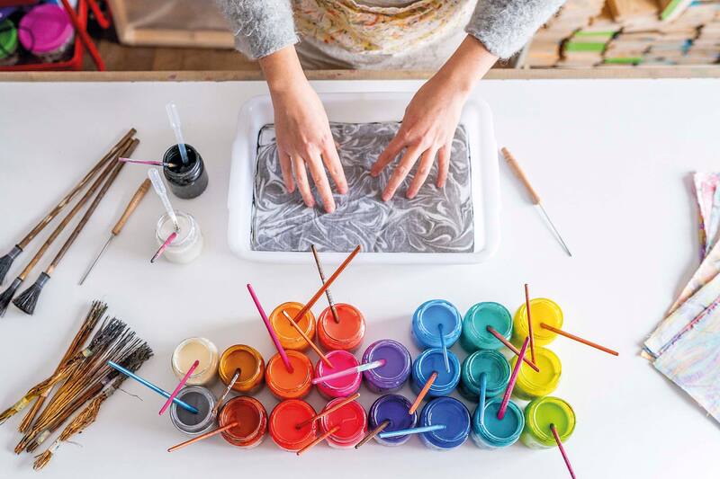 Este taller-estudio se dedica a la técnica de marmolado textil, que permite crear patrones al dejar caer la pintura sobre una superficie acuosa y luego transferirlo a materiales como papel y textil. “En estos tiempos, por la contingencia sanitaria, estamos realizando talleres online de marmolado textil y papel, cápsulas de videos con fundaciones y Anilinas Montblanc, y vendemos los insumos básicos para poder trabajar y hacer marmolados en casa”, cuentan. @wara.diseno
