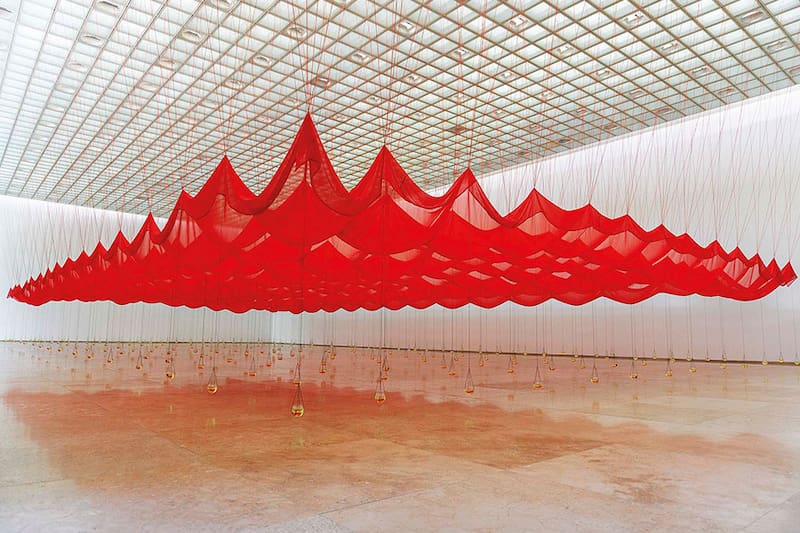 En marzo de este año presentó ‘Desplome’ en Galería Patricia Ready. Un gran paño de velo rojo, translúcido, suspendido entre cuerdas de seda y frascos de vidrio con un líquido viscoso en su interior. “Lo que se desploma cae y al mismo tiempo se descubre. Deja en evidencia su interior. Este interior tiene relación con lo más intrínseco”, explica, sumando que “la obra plantea la posibilidad de reconocernos en un lugar vulnerable, y al mismo tiempo en un lugar de cuidado y de esencia. Deseamos, sufrimos y conectamos con un otro”. www.mahaluf.net