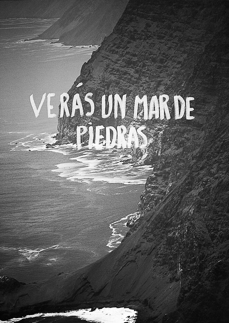 Así se llama el proyecto de Raúl Zurita, 22 frases proyectadas sobre los acantilados de la costa norte de Chile entre Pisagua e Iquique, que solo se pueden leer desde el mar. “Las frases se irán haciendo visibles en la medida en que avanza el atardecer, sucediéndose una tras otra, y alcanzarán su máxima visibilidad en plena noche cuando el mar, el cielo y los acantilados sean una sola masa negra. En ese momento estarán proyectándose los últimos ‘verás’: Verás que se va… Verás no ver... Y llorarás…, que permanecerán y comenzarán a desaparecer en la medida en que va amaneciendo hasta extinguirse completamente bajo la luz del nuevo día. Cuando todo termine solo quedará el sonido del mar”, explica Zurita. aninatgaleria.org