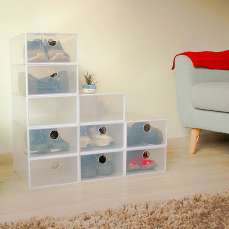 - Zapatos a la vista: ¿Tienes una ruma de zapatos en la parte de abajo de tu clóset? ¿O los guardas en las cajas de cartón que venían cuando los compraste? ¡No más! Los zapatos son uno de los principales motivos por el cual se ve desordenado tu clóset. Ordenando solamente tus zapatos ya darás un gran paso. Primero, compra nuestro organizador de zapatos que te permite tener los zapatos a la vista (al ser transparente) y los aleja del polvo; recomendamos además tener a la mano los que usas frecuentemente dependiendo de tu actividad principal.