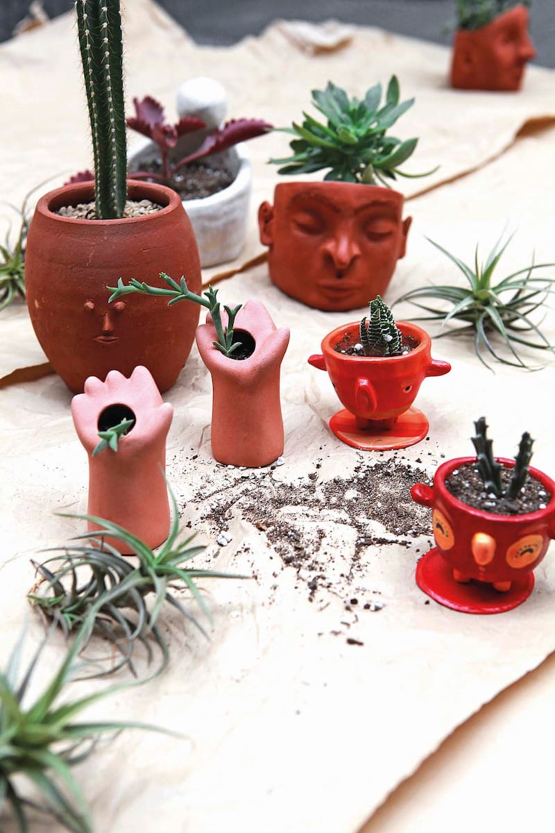 Las variedades de pastas que se obtienen de la arcilla y las plantas –en sus infinitos tipos y especies– se aman. No es tan simple como que las plantas necesiten recipientes para vivir; además, quizás por su pasado en la tierra, las cerámicas reclaman algo vivo. Estos amantes de las plantas o de la cerámica sintieron que uno no era nada sin el otro y ofrecen ese romance en hermosos maceteros.