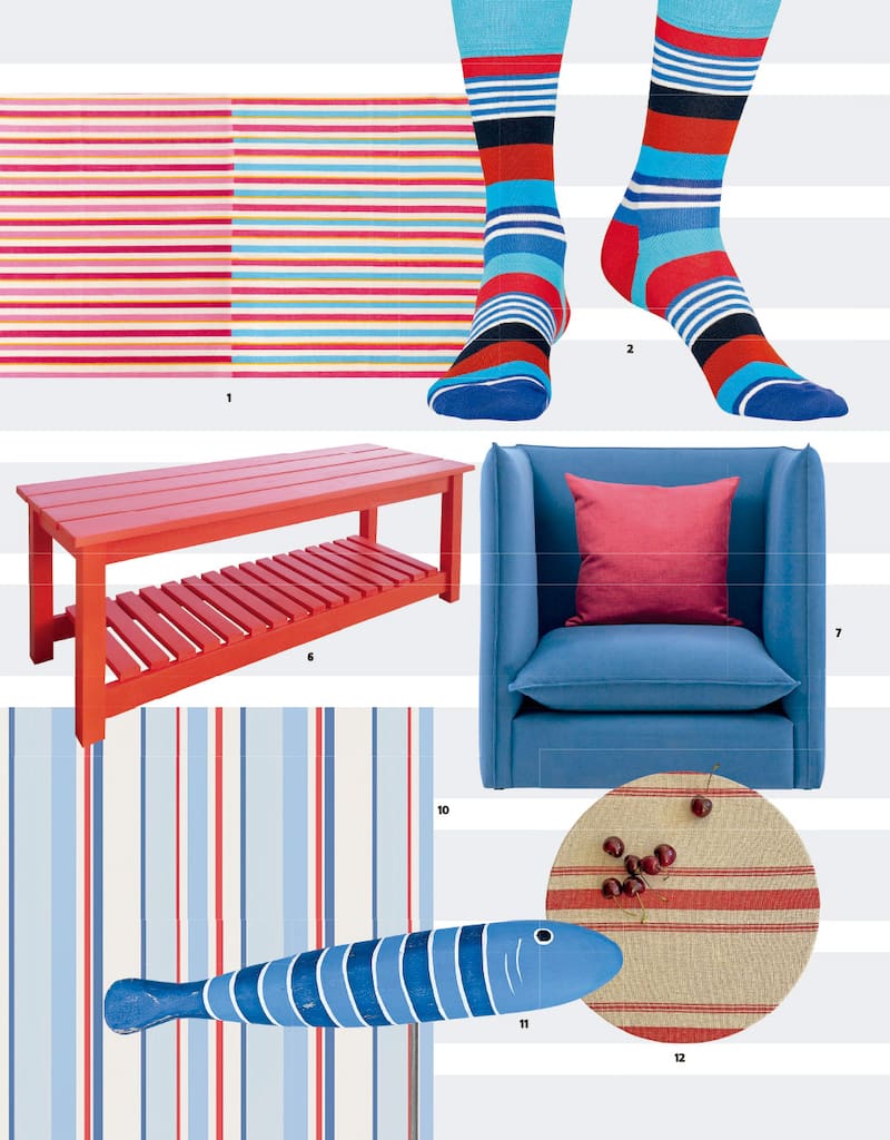 HORIZONTALES, VERTICALES, CURVAS, finas o gruesas ¡siempre podemos volver a ellas! Y aquí las juntamos con un toque “navy”.