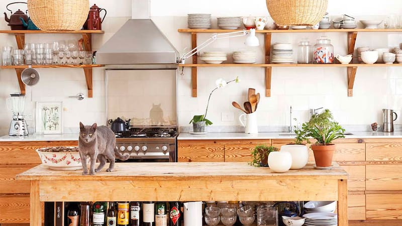 Asimismo, los muebles de cocina, la escalera y la pantalla que recubre la escalera son de madera de pinotea recuperada de la demolición de la casa de atrás.