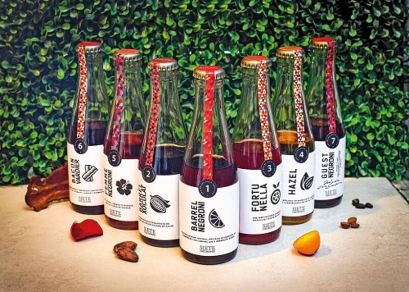 Sorprender con ricos cócteles hechos por expertos, pero en tu casa. Son la edición que sacó Siete Negronis, el premiado bar timoneado por Matías Supán, especializado en negronis de alta calidad, en lindas botellas perfectamente selladas, así que de larga duración. Son 180 cc en cada una, suficiente para dos vasos cortos, hielo y disfrutar, es lo único que hay que hacer. Son siete versiones de tendencia más fresca o piscineables. Desde el Barrel Negroni (con Tanqueray añejado dos meses en barrica de carmenere (insignia del local) a Xocolat; Fortunella –toque de maracuyá–; Hazel de avellanas, otros con espresso, bourbon, y así harta sorpresa rica a un destape de distancia. @sietenegronis