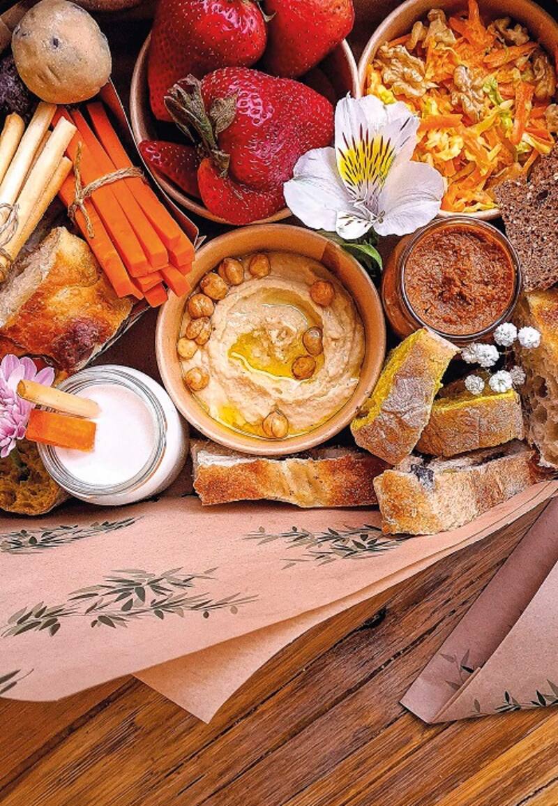 Hummus, pesto de semillas y tomates secos, mayonesa vegana de cúrcuma, frutos secos asados con especias además de un mix de panes artesanales, entre otros, trae la caja Reina Pichanga de Realmente Veggie. Elaboradas a mano por las hermanas Fernanda y Gabriela Nash, son un verdadero festival de sabores y su presentación es impecable. Para los veganos el queso se cambia por champiñones y la miel por agave. Mención aparte para los dulces, que también incluyen: galletas veganas, barrita de chocolate y unas adictivas bolitas de coco y plátano cacao. $28 mil para dos personas, se le puede agregar cerveza o espumante. @realmenteveggie / @Ilmerkato.cl
