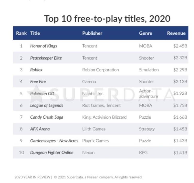 Es así como el juego se ubicó en la quinta posición de los títulos móviles con mayores ingresos. El primer puesto se lo llevó el moba de Tencent, Honor of Kings, siendo seguido por Peacekeeper Elite, Roblox y Free Fire.