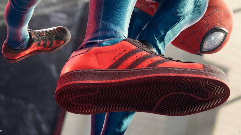 Dichas Adidas Superstar destacan por su color rojo con franjas negras y, de acuerdo a Marvel, pronto los fanáticos podrán disfrutarlas más allá del videojuego.