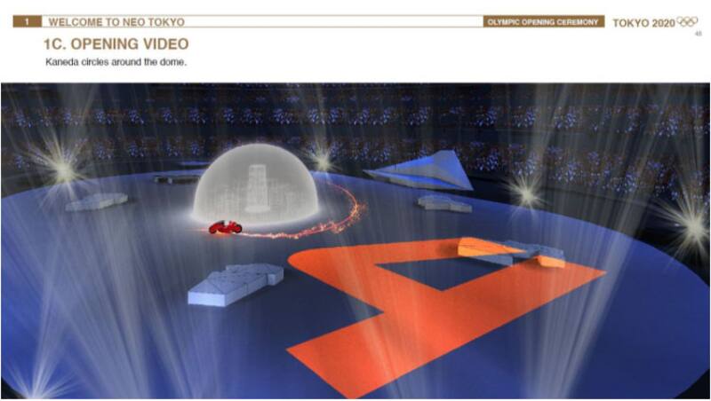 Según detallan, la propuesta fue creada por la coreógrafa Mikiko, quien colaboró en la presentación de Japón durante el cierre de los juegos de 2016, y una de las páginas del documento muestra la famosa moto de Kaneda dando vueltas alrededor del domo de Neo Tokio.