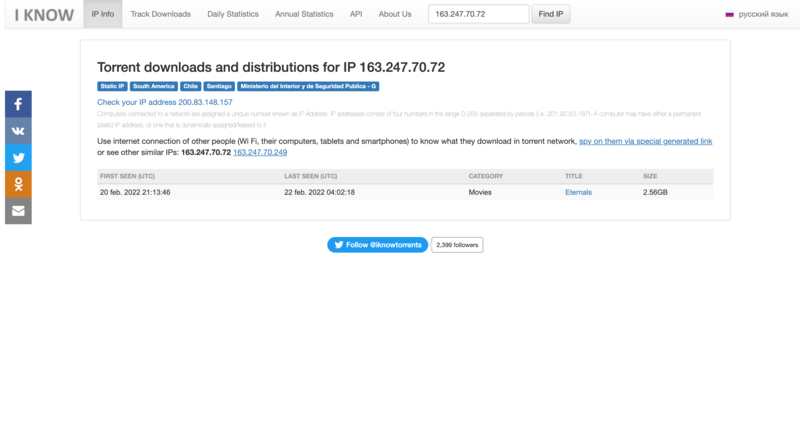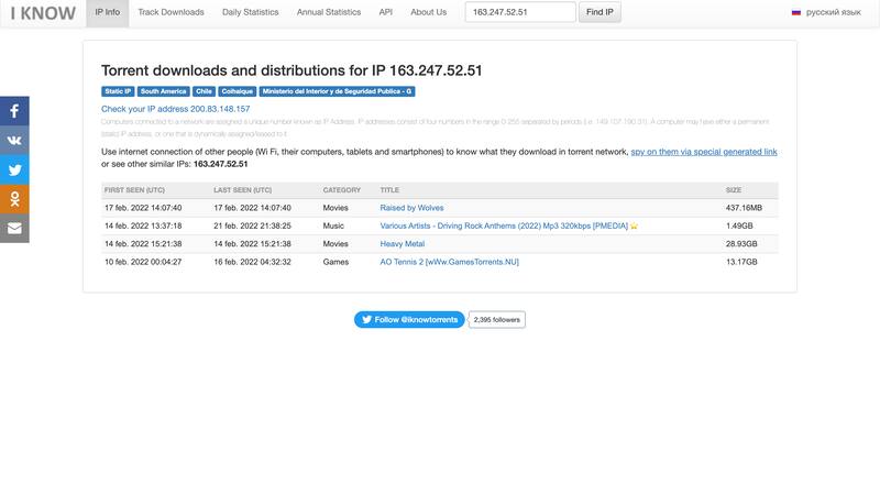 Y eso no es todo porque al repetir el mismo ejercicio con el resto de las IP se puede comprobar que con una dirección del Ministerio de Transportes y Telecomunicaciones se descargó un episodio de Raised By Wolves además de una compilación de rock, entre otros archivos.